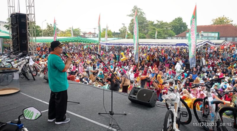Arba Riksawan Qomaru SE Ketua PDM Kab Bantul dalam sambutannya mengajak seluruh Jamaah/warga yang hadir dalam semarak milad muhammadiyah ke 111 ini mensyukuri nikmat Allah SWT, di usia yang ke 111 kontribusi muhammadiyah telah dirasakan manfaatnya baik oleh pemerintah maupun masyarakat umum dalam berbagai bidang. Muhammadiyah selalu hadir menjawab problematika dan kebutuhan masyarakat melalui peran majelis/lembaga/ortom maupun amal usaha yang dimiliki oleh Persyarikatan. Arba Riksawan Qomaru juga menyampaikan peran jamaah/warga muhammadiyah yang begitu besar dalam membesarkan syiar dakwah persyarikatan muhammadiyah di setiap jenjang baik ranting, cabang maupun daerah. Melalui semarak milad ini diharapkan semakin memperkuat silaturahim warga dengan warga dan pimpinan dengan warga. Qomaru juga mengapresiasi tim bersih jalan sehat dari berbagai santri dan siswa di satuan pendidikan muhammadiyah se bantul yang langsung membersihkan area kegiatan sehingga kebersihan terjaga.