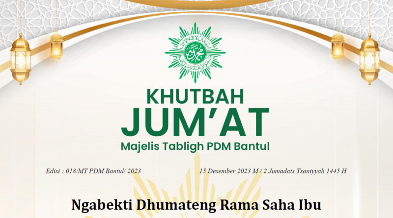 أَمَّا بَعْدُ, فَيَا عِبَادَ اللهِ أُوْصِيْكُمْ وَنَفْسِيْ بِتَقْوَى اللهِ فَقَدْ فَازَالْمُتَّقُوْنَ. قَالَ الله تَعَالَى أَعُوْذُ بِاللهِ مِنَ الشَّيْطَانِ الرَّجِيْمِ. وَقَضٰى رَبُّكَ اَلَّا تَعْبُدُوْٓا اِلَّآ اِيَّاهُ وَبِالْوَالِدَيْنِ اِحْسٰنًاۗ اِمَّا يَبْلُغَنَّ عِنْدَكَ الْكِبَرَ اَحَدُهُمَآ اَوْ كِلٰهُمَا فَلَا تَقُلْ لَّهُمَآ اُفٍّ وَّلَا تَنْهَرْهُمَا وَقُلْ لَّهُمَا قَوْلًا كَرِيْمًا وَاخْفِضْ لَهُمَا جَنَاحَ الذُّلِّ مِنَ الرَّحْمَةِ وَقُلْ رَّبِّ ارْحَمْهُمَا كَمَا رَبَّيٰنِيْ صَغِيْرًاۗ
