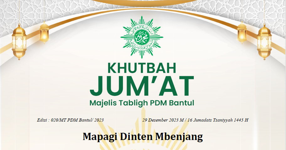 Puji saha syukur ingkang linangkung kathah, inggih kula lan penjenengan sedaya, taksih dipun paringi sih nugraha rahmat kawelasan saking Allah SWT, saged nindakaken pangibadahan dzikir, munajat, shalat saha amal amal kesaenan sanesipun. Kanthi pangajab saha pandonga mugi sedaya amal kesaenan kasebat dipun tampi wonten ngarsanipun Allah SWT.