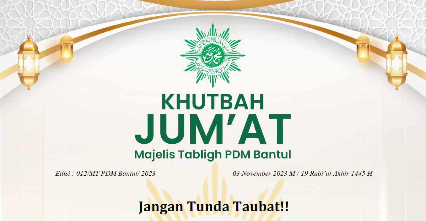 أَمَّا بَعْدُ : فَيَا أَيُّهَا الْحَاضِرُوْنَ، اِتَّقُوْا الله حَقَّ تُقَاتِهِ وَلَا تَمُوْتُنَّ إِلَّا وَأَنْتُمْ مُسْلِمُوْنَ، قَالَ اللهُ تَعَالَى وَإِنِّي لَغَفَّارٞ لِّمَن تَابَ وَءَامَنَ وَعَمِلَ صَٰلِحٗا ثُمَّ ٱهۡتَدَىٰ