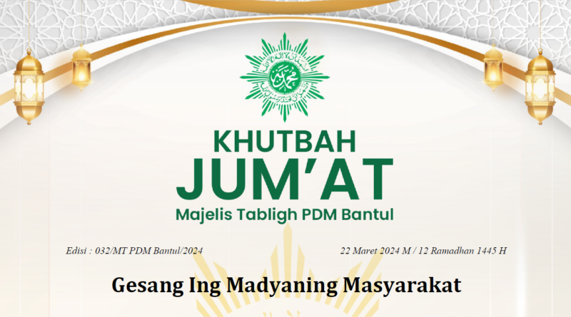 Mangga tansah ngaturaken raos syukur wonten ngarsa dalem Allah I, shalawat saha mugi tansah kaaturaken dhumateng nabiyullah Muhammad r. Saha mboten kesupen tansah mbudidaya amrih saenipun kualitas iman saha taqwa dhumateng Allah I.