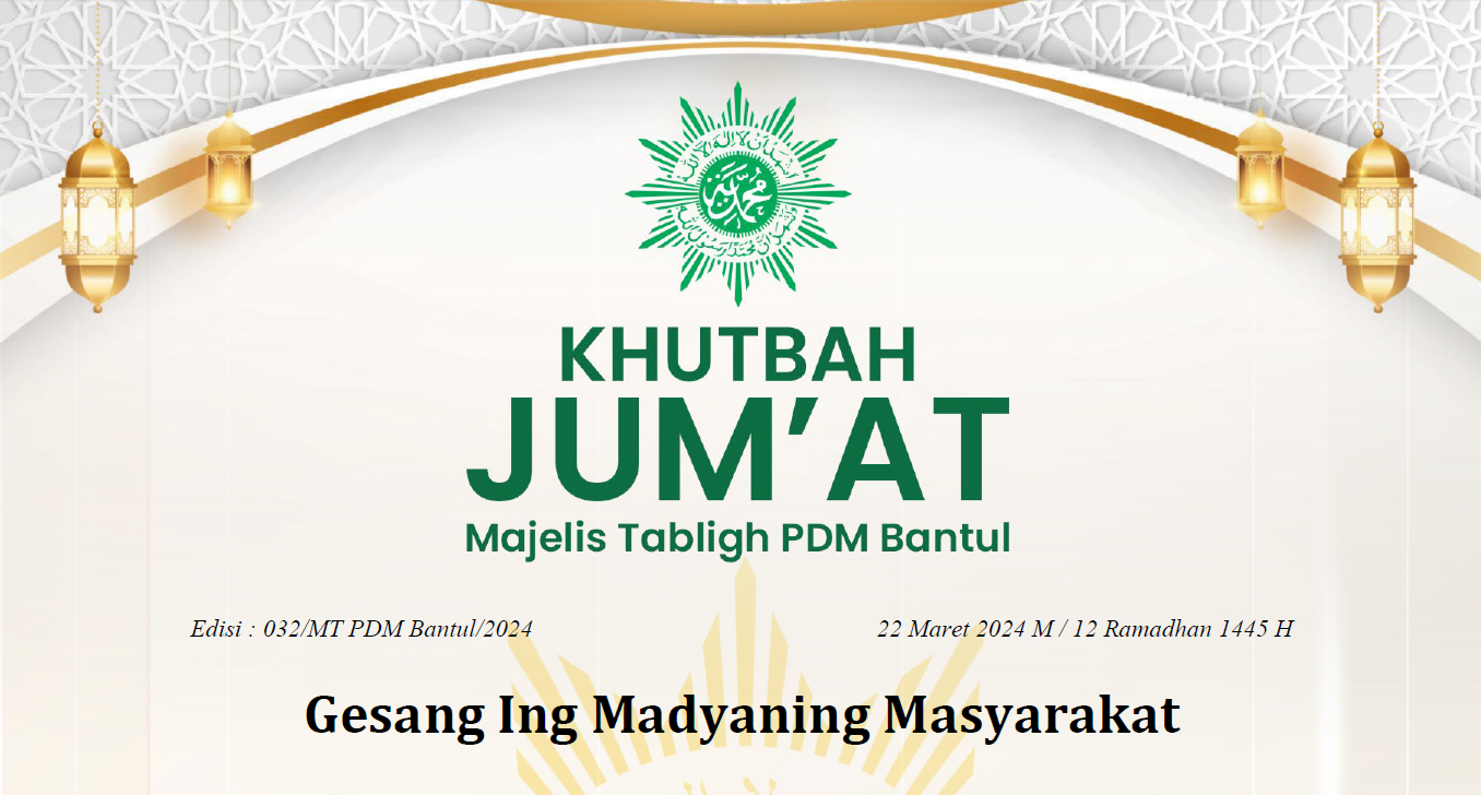Mangga tansah ngaturaken raos syukur wonten ngarsa dalem Allah I, shalawat saha mugi tansah kaaturaken dhumateng nabiyullah Muhammad r. Saha mboten kesupen tansah mbudidaya amrih saenipun kualitas iman saha taqwa dhumateng Allah I.