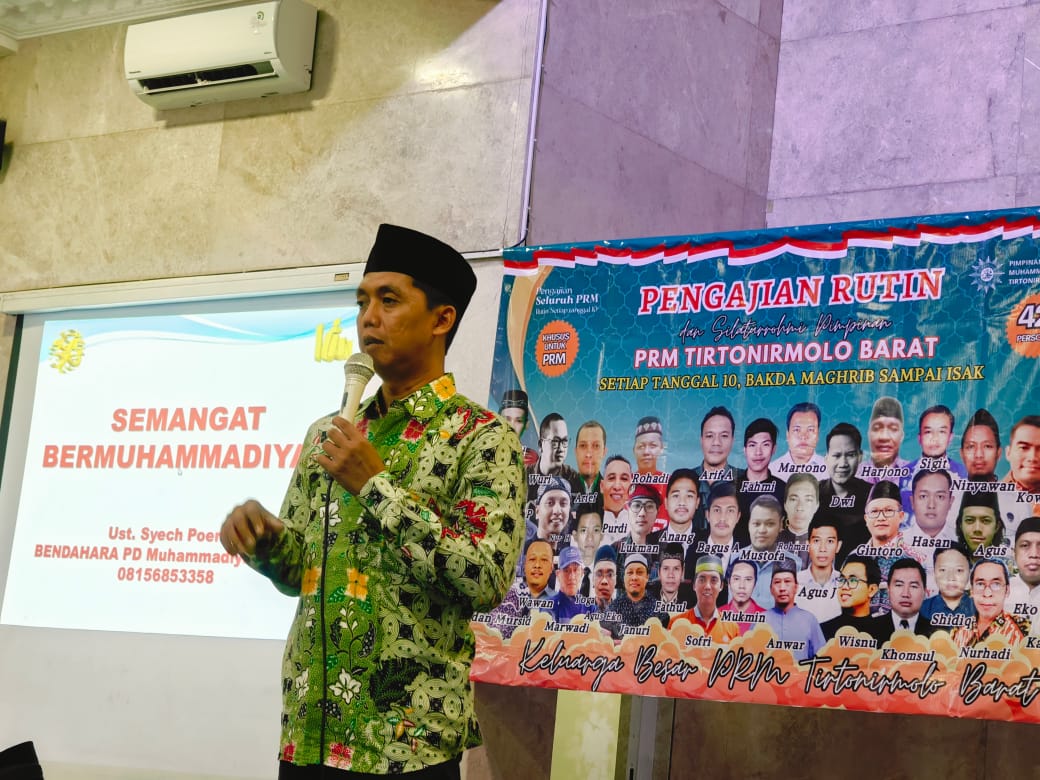 Pimpinan Ranting Muhammadiyah (PRM) Tirtonirmolo Barat Cabang Kasihan Daerah Bantul DIY menyelenggarakan Pengajian Khusus rutin untuk seluruh anggota PRM yang berjumlah 42 personil terdiri dari 9 Pimpinan Harian dan 33 Anggota Bidang di lingkup PRM Tirtonirmolo Barat (Bidang Tabligh, Tarjih dan Pembinaan Masjid/Musala, Bidang Pendidikan, Bidang Pembinaan Kader dan AMM, Bidang Wakaf, dan Bidang Ekonomi Kreatif). Pengajian Khusus edisi bulan September diselenggarakan pada hari Selasa 10 September 2024 malam di Masjid AL-Muthohar Kampung Bekelan.