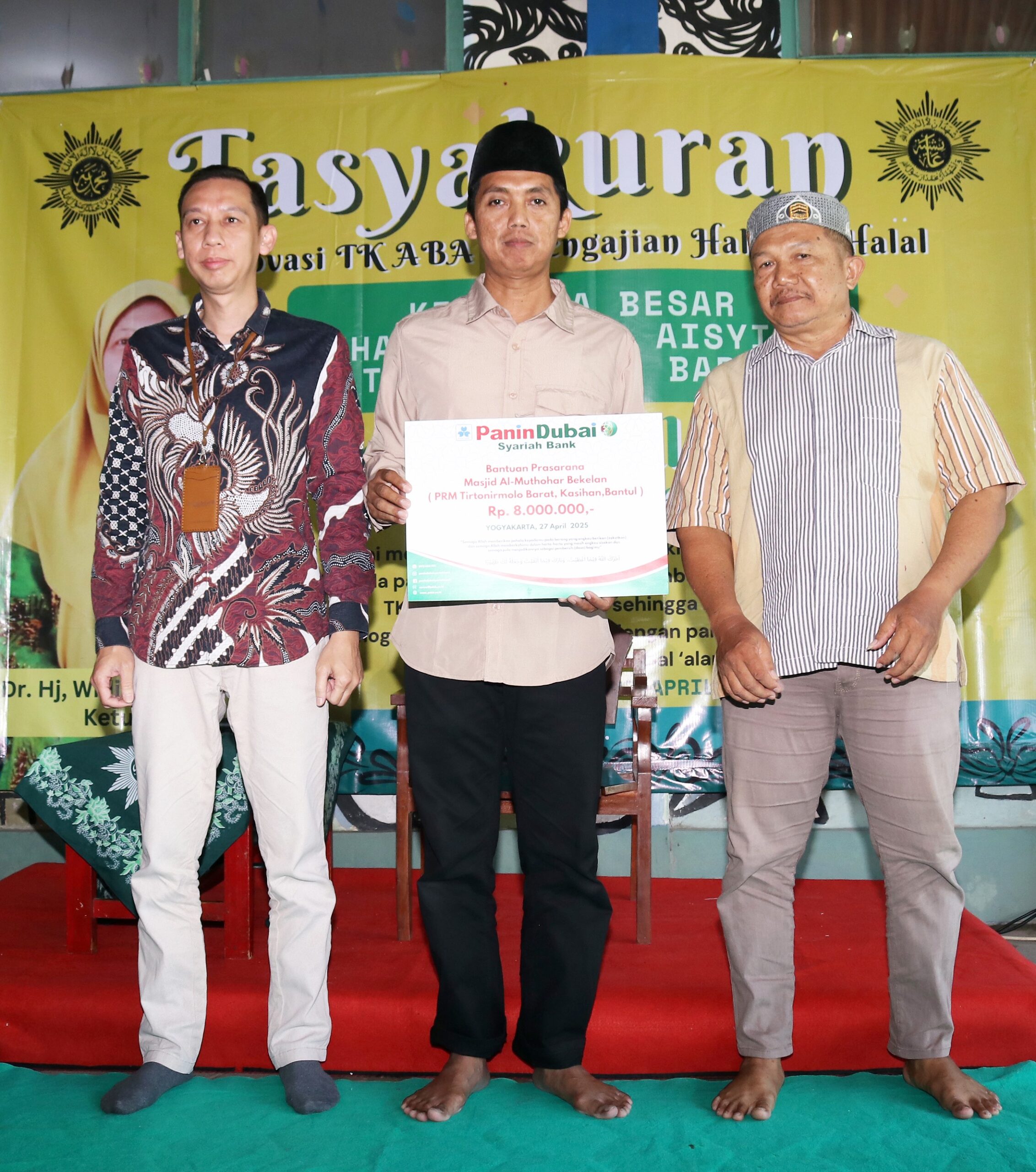 Penyerahan bantuan dilakukan oleh Chandra Adhityo Putra sebagai Relationship Manager Funding Bank Panin Dubai Syariah kepada Sofriyanto sebagai Ketua PRM Tirtonirmolo Barat yang selanjutnya bantuan tersebut diserahkan kepada Sugiyat (Kang Sagi) perwakilan Takmir Masjid Al-Muthohar Bekelan.